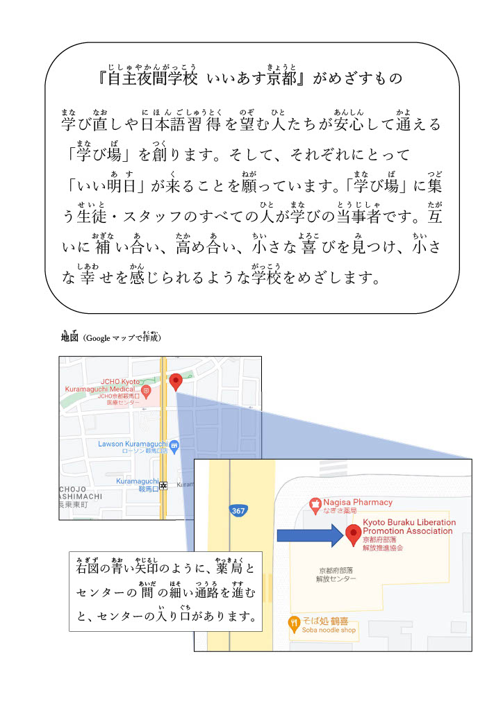 自主夜間学校 いいあす京都のホームページへようこそ。